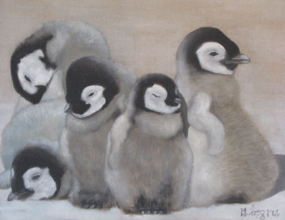 Poussins Manchots "froids" - 2013 - huile sur toile - 55x45cm - collection particuliere