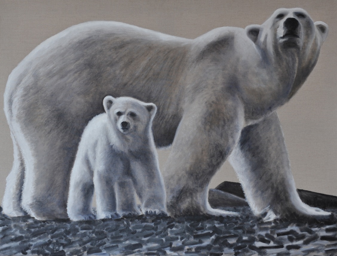 Ourse pôlaire et son ourson - 2002 - huile sur toile - 116x89cm - disponible